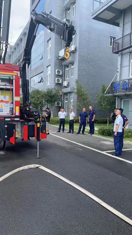 演示結(jié)束后,鎮(zhèn)政府各級領(lǐng)導(dǎo)及平陽縣大隊(duì)領(lǐng)導(dǎo)來到新購的舉升搶險(xiǎn)主戰(zhàn)消防車前,詳 細(xì)參觀、了解消防車輛技術(shù)性能,觀摩了新型消防車輛器材的展示和車輛各種功能操作 演示,并對我公司研制的新產(chǎn)品進(jìn)行了點(diǎn)評,給予了高度的贊許,稱此款車型最大化的 滿足了老舊小區(qū)、狹窄街道、城鄉(xiāng)低建筑物等滅火救援工作的需要。